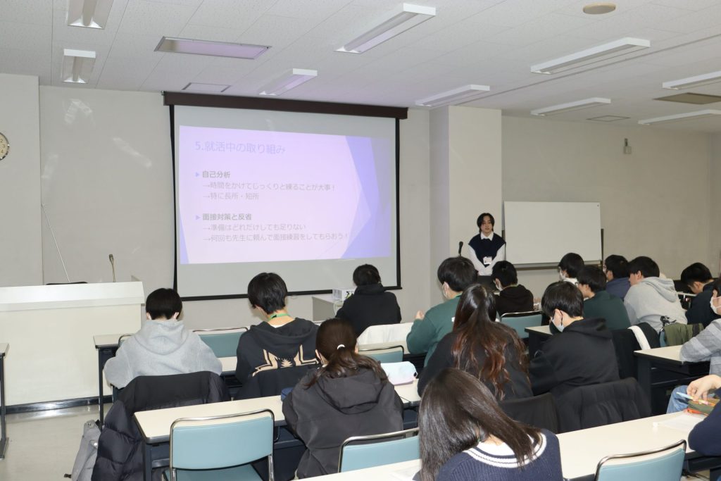 お正月が明けると、今度は2027年3月卒業予定の在校生達の就活がスタートするのですが、見事に就職内定を勝ち取った先輩達による“就活プレゼン”が、後輩に向けて行われました。