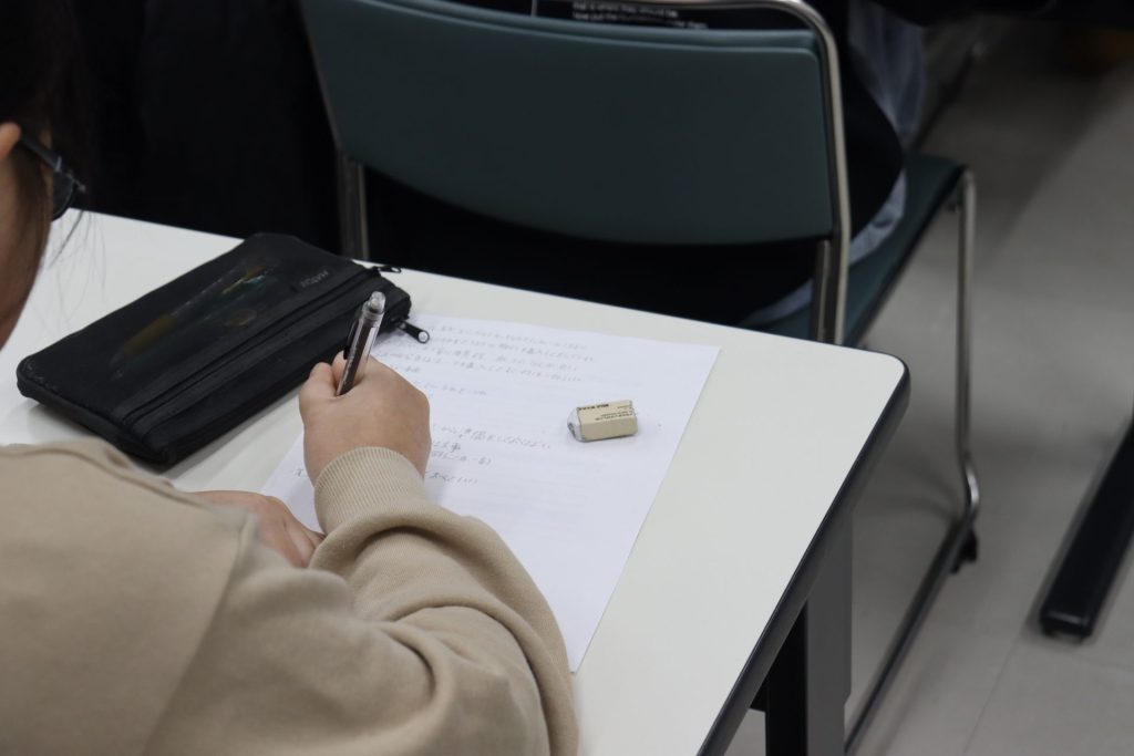 就職活動を行ってみた感想やアドバイス等を、4週間にわたって10名の先輩達が講話形式で担当。普段は先生方が親身なサポートをしてくれますが、今回は年齢の近い先輩達の、“実体験”が聞ける貴重な会となりますので、後輩達も熱心にメモを取ったり質問をしたりと、大変盛り上がりました。